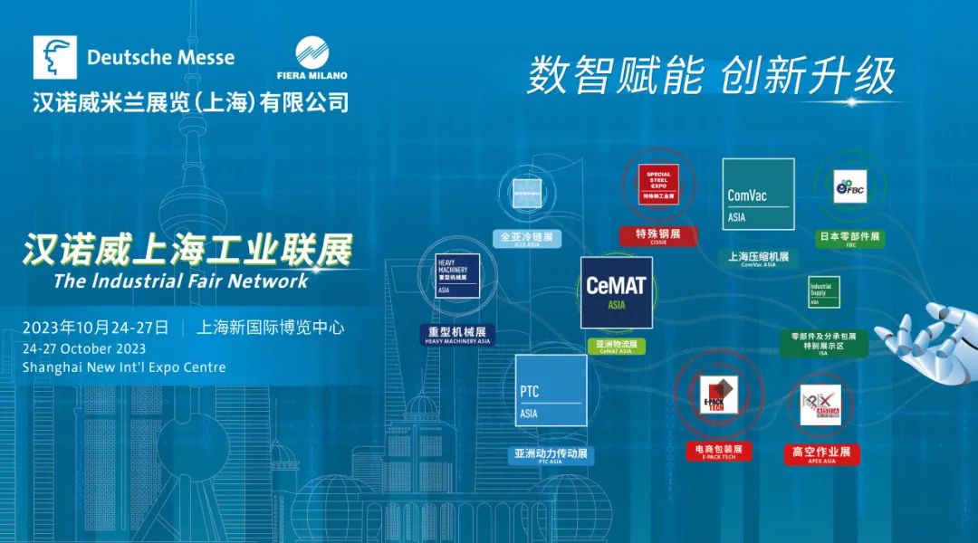 2023亚洲物流展将联动亚洲国际动力传动与控制技术展览会(PTC ASIA)、上海国际压缩机及设备展览会(ComVac ASIA)、全亚冷链技术与配送展览会(ICCE ASIA)、亚洲国际电子商务包装技术展览会(E-pack Tech)、上海国际工业零部件及分承包展览会(ISA)、亚洲国际高空作业机械展览会(APEX ASIA)、上海国际重型机械装备展览会(HEAVY MACHINERY ASIA)、亚洲智能加工与工业零部件展览会(FBC)以及中国国际特殊钢工业展览会(CISSIE),共计十大上下游行业展会,同期同地举办汉诺威上海工业联展,聚焦数智制造与产业升级。