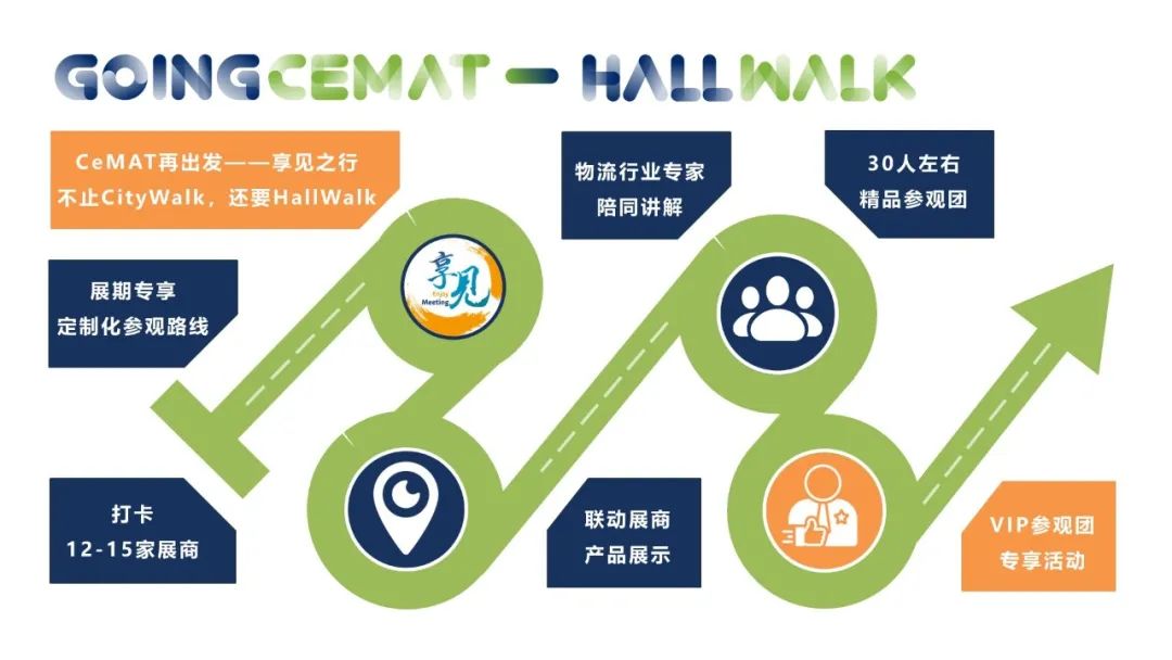 专业观众组团参观活动焕新升级。为提升现场专业买家以及VIP观众团与展商的互动交流,享见计划在原有的服务基础上推出定制化巡馆活动——CeMAT再出发之享见之行。享见计划已累积了三年经验值,贯穿展期为组团观众提供高效,优质,省心的服务。此次享见之行将包含展期定制化参观路线;联动展商,产品展示,面对面商务交流;物流行业专家全程陪同讲解,尊享30人左右精品参观团服务。