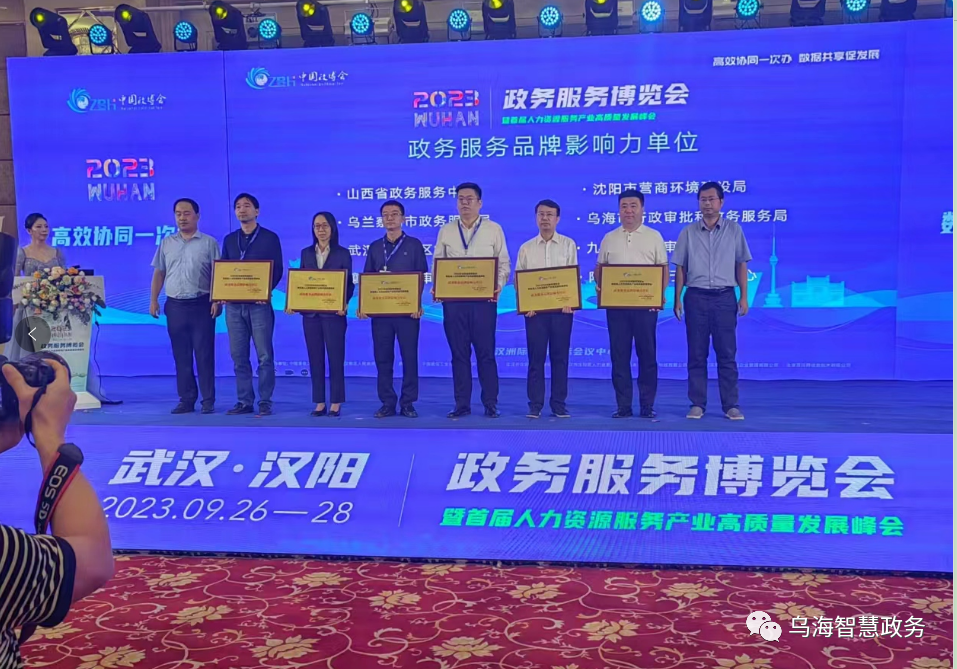 “乌海·无忧办”荣获2023年政务服务博览会“政务服务品牌影响力”奖项