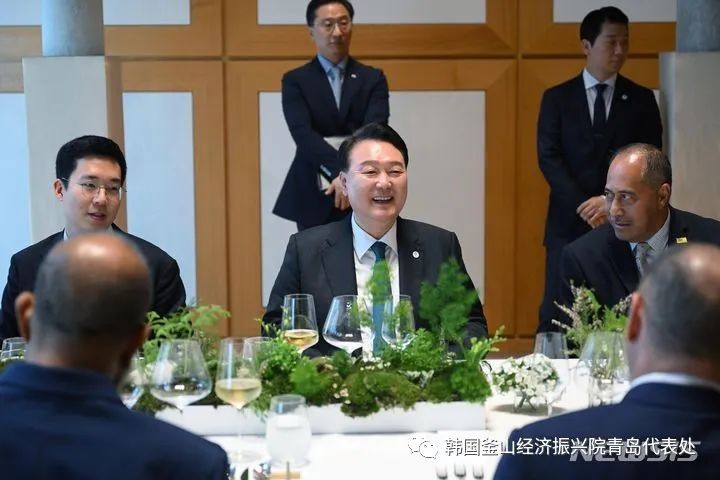 尹总统当天表示:"韩国将共同应对太平洋岛国实际威胁的气候危机等,作为太平洋岛国长期发展的真正伙伴,构建相生合作网络。"