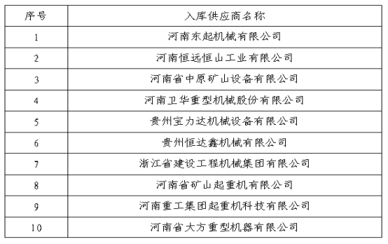 1、项目名称:贵阳城市建设工程集团有限责任公司起重机械设备供应商入库采购