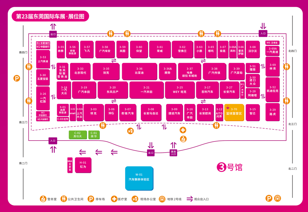 车展出入场示意图(观众入口:3号馆3号门、12号门;出口:序厅、13号门)
