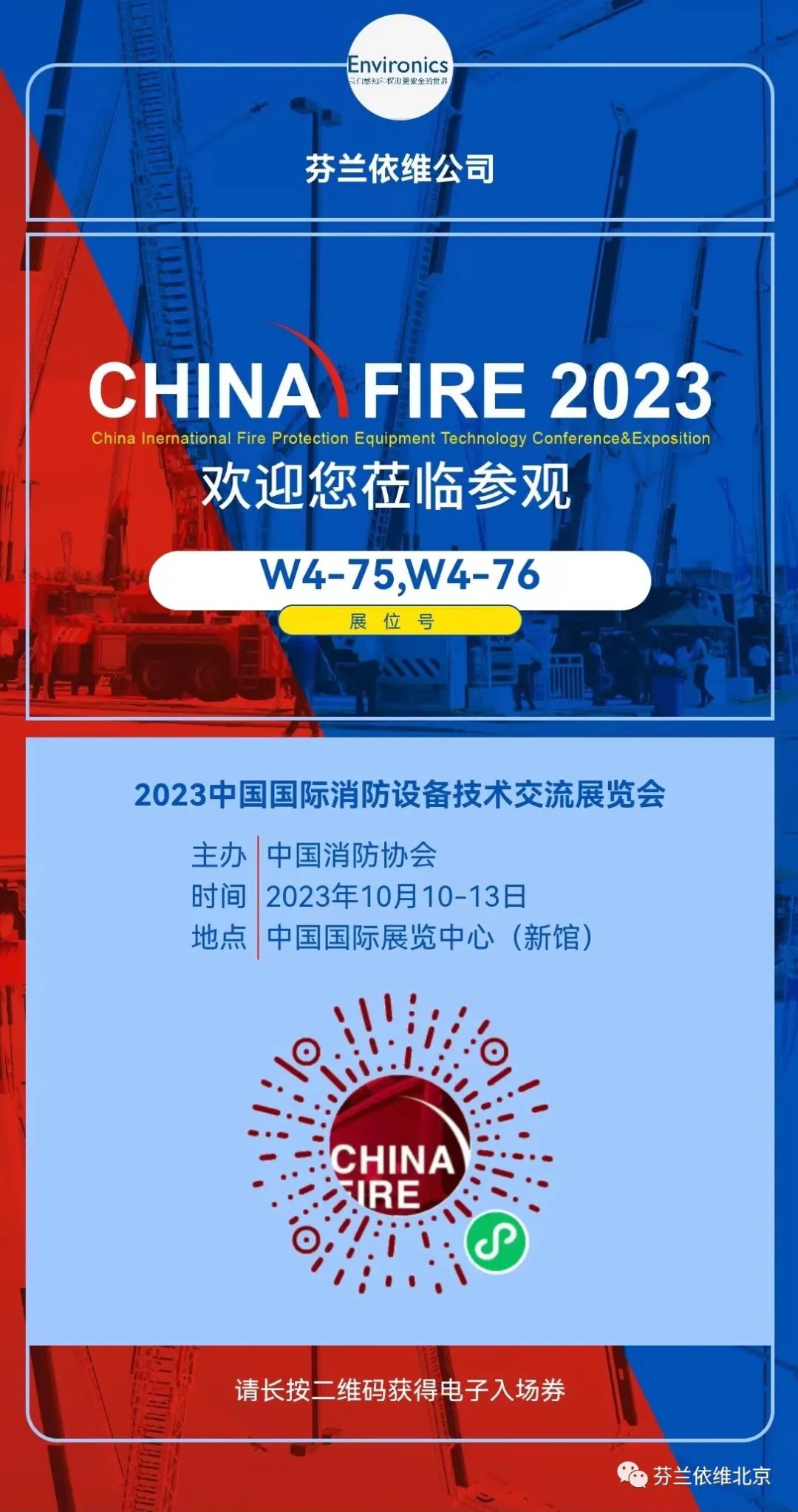 2023年10月10日至13日,中国消防协会将在北京市顺义区中国国际展览中心新馆举办第二十届中国国际消防展,本届展会以“助力产业发展,服务消防救援”为主题,共将吸引来自全球40多个国家和地区1000余家单位参展,展览面积将达14万平方米,参观观众预计12万人,是世界上规模最大、展品最全、影响力最高的全球三大消防品牌展会之一。