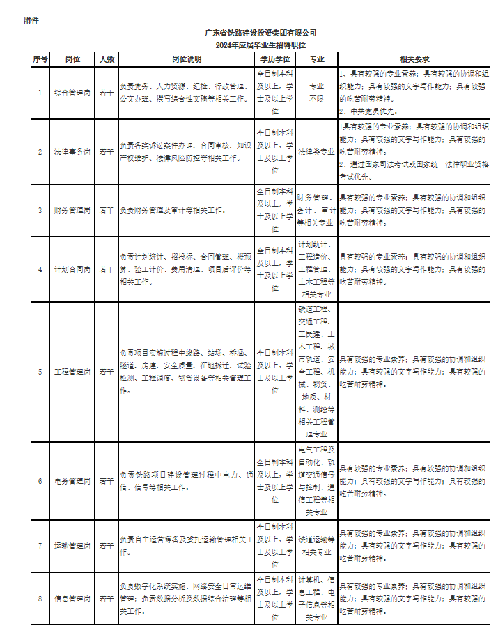 广东省铁路建设投资集团有限公司2024年校园招聘公告