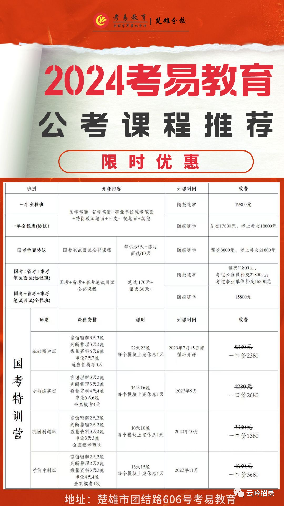 考易教育楚雄校区近期课程推荐: