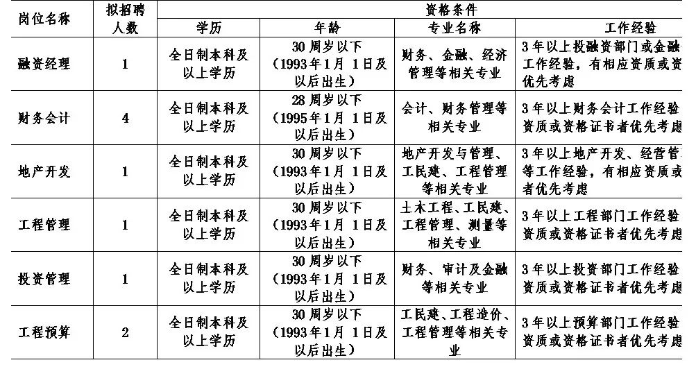 6.经济管理类、企业管理类、金融类、财务类、工程类、审计类、理工类等与任职职位相关专业;有相应资质或资格证书的优先考虑。