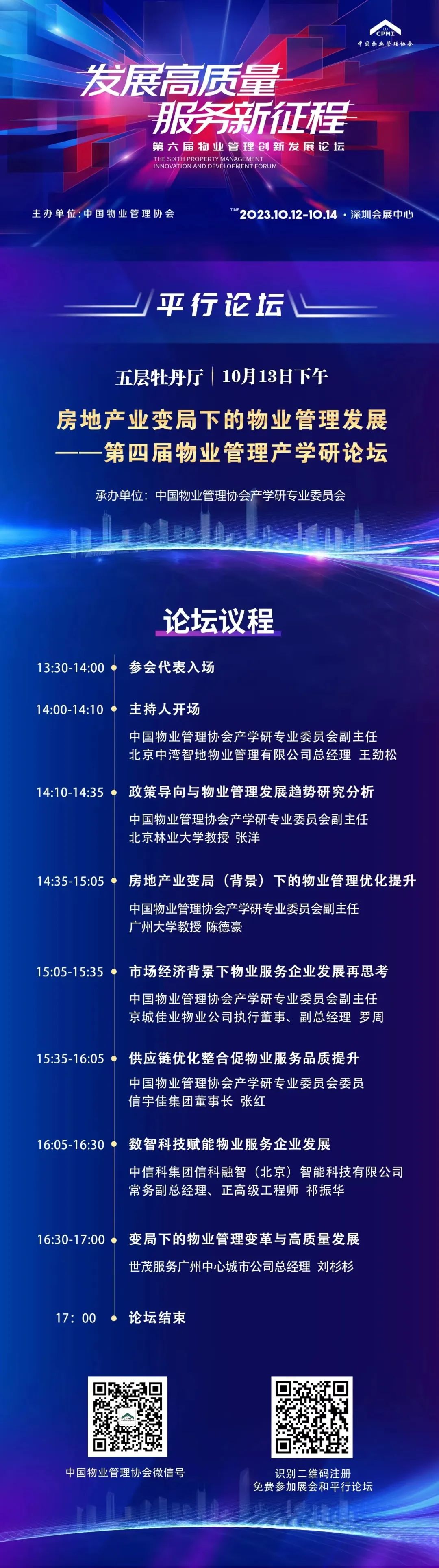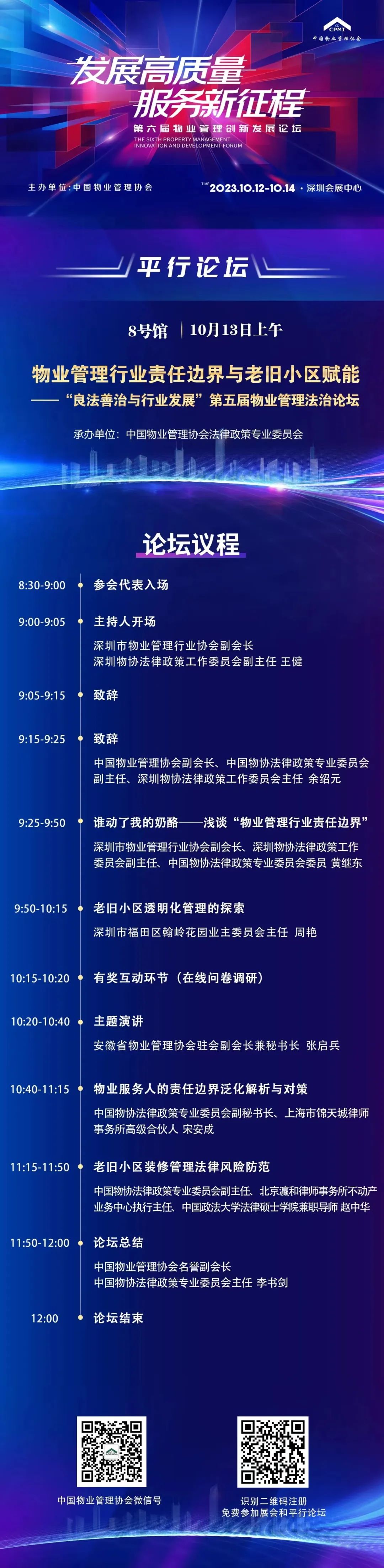 本届中国物博会在住房和城乡建设部房地产市场监管司、深圳市住房和建设局的指导下,由中国物业管理协会主办,各地方物业管理协会协办,《中国物业管理》杂志社和深圳市物业管理行业协会承办。