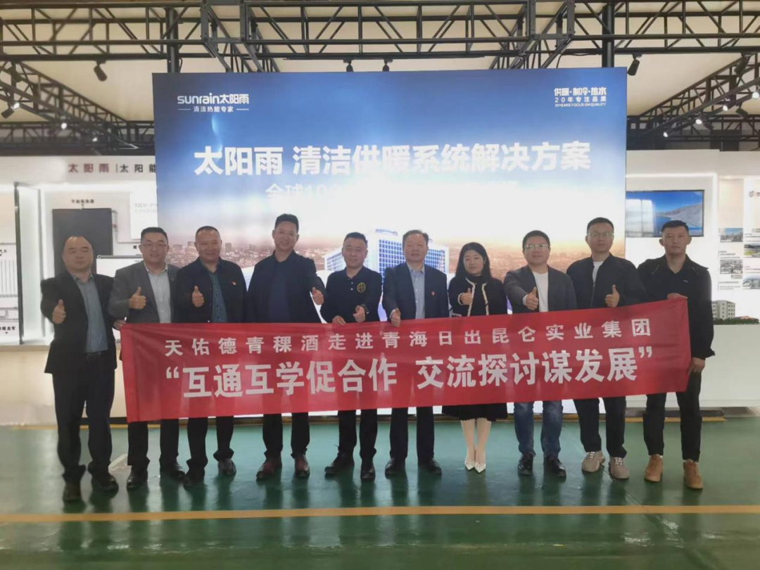 天佑德青稞酒公司一行人员参观了青海日出昆仑集团清洁能源供暖供热设施展厅,听取了公司成功实施的清洁能源供暖和供热项目的建设与运行情况的介绍,表现出了极大的兴趣。在座谈交流时,播放了天佑德品牌宣传片和天佑德青稞酒公司党建工作宣传片,天佑德青稞酒公司营销中心销售管理部高端酒业务部部长孙延奎向与会人员介绍了天佑德青稞酒公司产业板块发展情况。鲁水龙总裁详细介绍了天佑德青稞酒公司的“四美”战略和企业文化建设情况。青海日出昆仑实业集团党支部书记闫洪宁介绍了青海日出昆仑实业集团各产业板块的发展状况和党建工作情况。董事长刘凌首先表达了对青海民营企业中的佼佼者天佑德青稞酒公司的美好祝愿,对天佑德青稞酒公司在激烈的白酒市场竞争环境中采取的营销策略表示赞赏,表示公司一如既往地要加强内部管理,积极培养引进人才,内强业务,外树形象,坚定不移地投身我省“四地”建设战略,在清洁能源产业高地建设中发挥积极的作用,做强做大。