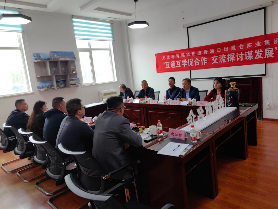 9月20日上午,天佑德青稞酒走进青海日出昆仑实业集团,双方企业开展以“互学互通促合作,交流探讨谋发展”为主题的党建交流活动。青海互助天佑德科技投资管理集团总裁、新丁香粮油公司董事长鲁水龙,青海互助天佑德科技投资管理集团新丁香粮油公司营销部大客户经理梁锋,青海互助天佑德青稞酒股份有限公司营销中心销售管理部总经理王彩霞等一行到访青海日出昆仑实业集团。青海日出昆仑实业集团董事长刘凌,青海日出昆仑实业集团党支部书记、副总经理闫洪宁,青海日出昆仑实业集团副总经理、青海三力新能源技术有限公司总经理李建康,青海日出昆仑实业集团技术总监刘陆广、青海日出昆仑实业集团总经理助理韩雪共同参加了此次交流活动。