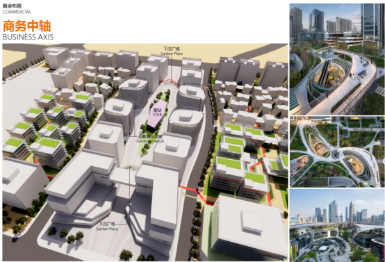 商务中心用地面积约33.8万平方米,建筑面积约111万平方米,以商办为核心,发展平层办公、独栋办公、叠拼办公、酒店、公寓等物业,引入会展服务、供应链服务、商贸消费、跨区/境电商、智慧供应链、金融与互联网科技等产业。