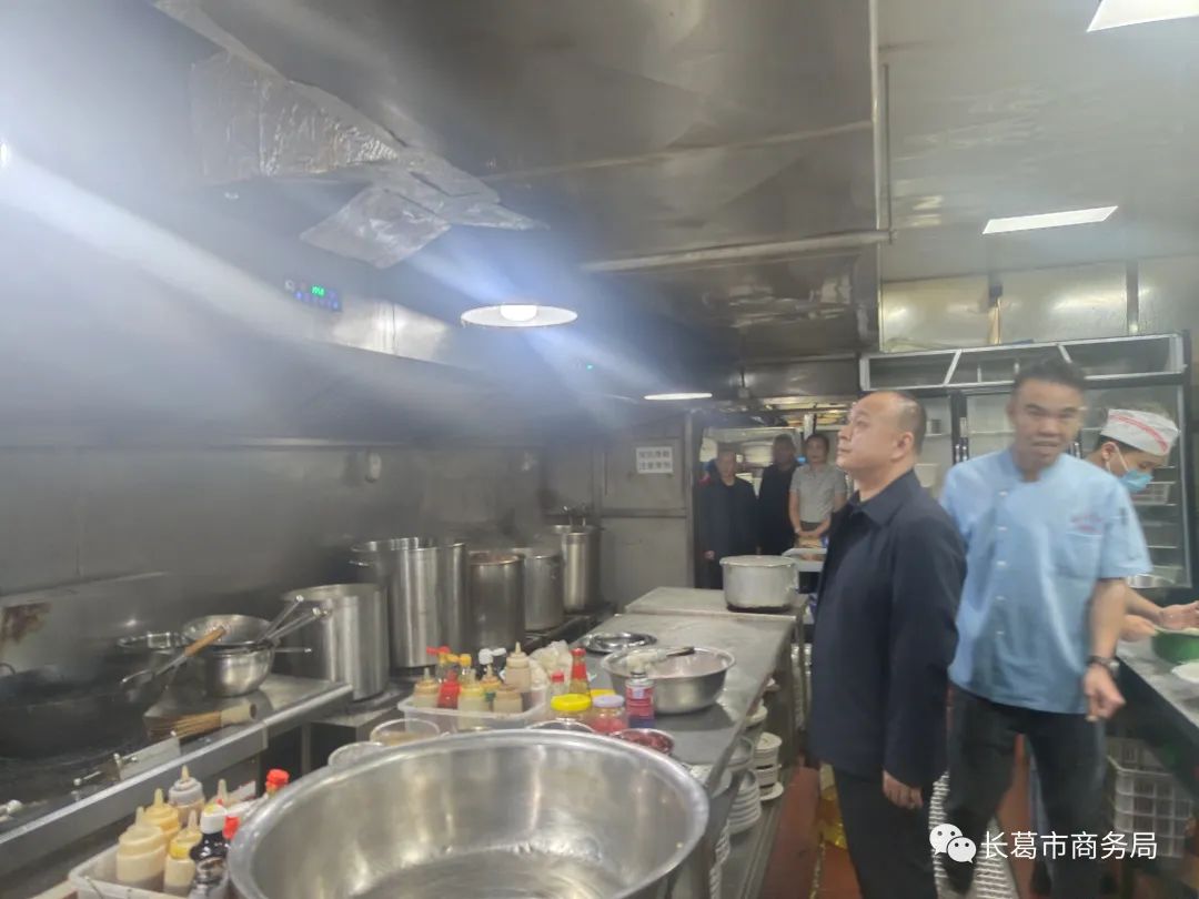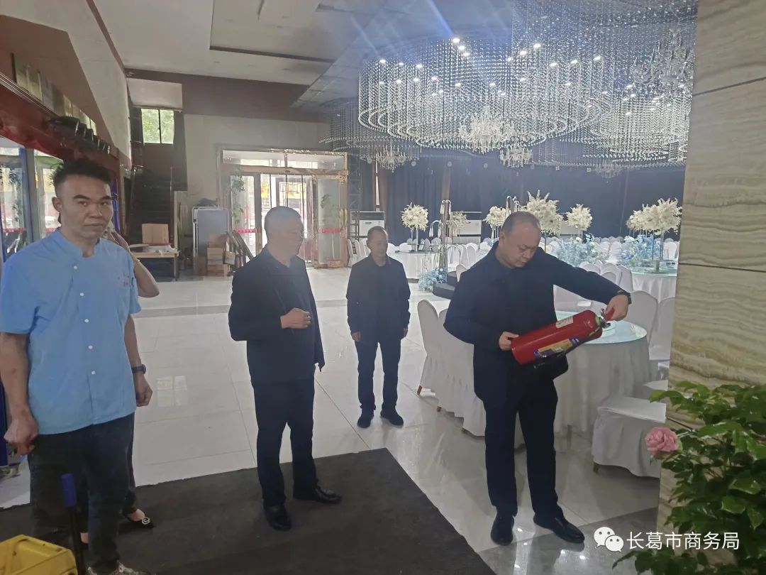 9月27日上午,长葛市商务局党组成员杨景民带领商贸服务组、餐饮协会对状元府、手牵手酒店、如苑海鲜城开展“双节”前用气用电、消防安全督导检查。