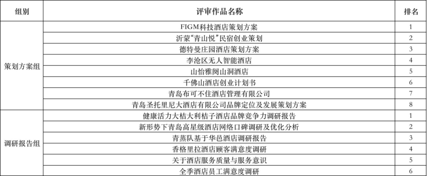 最终《健康活力大桔大利桔子酒店品牌竞争力调研报告》《新形势下青岛高星级酒店网络口碑调研及优化分析》等14支项目团队成绩优异,推荐参加省赛。其中,酒店赛道策划方案组8支,酒店赛道调研报告组6支。
