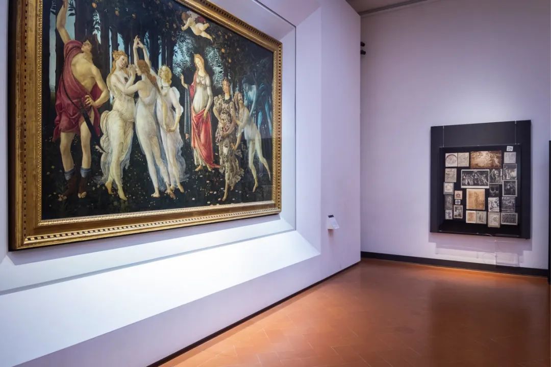 回到乌菲齐的展览。展览持续到12月,展览的思路就是把瓦尔堡后期所探索的《记忆女神图集》的方法带回到早期他的艺术史的视觉受训时期(1888-1889年)和从材料发现到系统研究过渡期(1897-1904年,收集了4000册书),而后期的方法也正好是佛罗伦萨的研究所触发的。根据乌菲齐官网的英文介绍(英文与意大利语介绍内容差异较大),展览分为五个主题房间:一是瓦尔堡与佛罗伦萨(Florence)的关系;