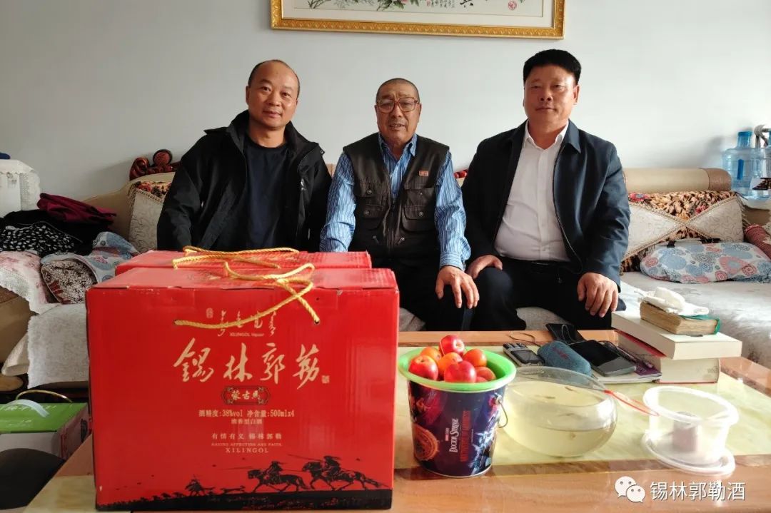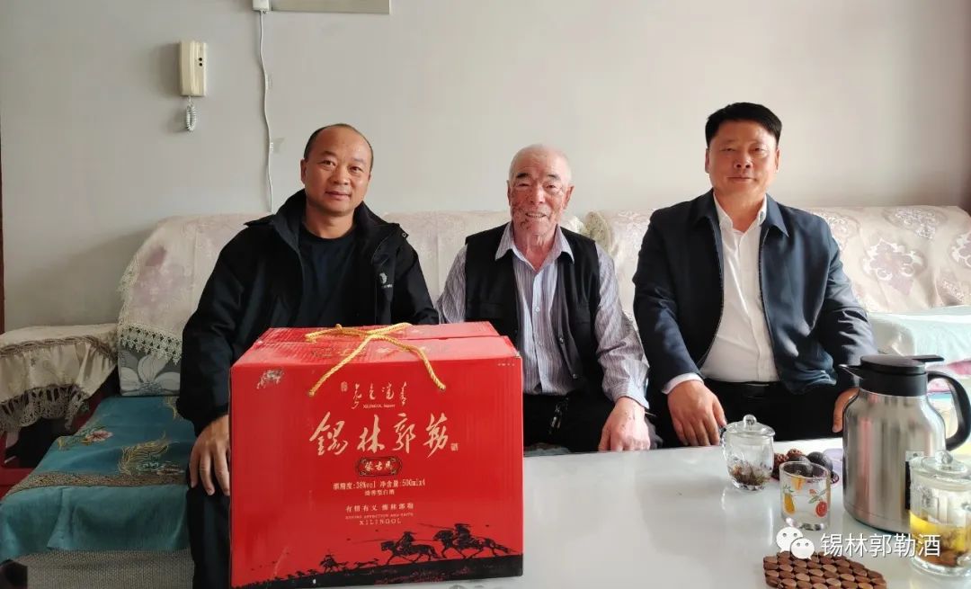 中秋、国庆双节将至,锡蒙酒业经多方打听,最终通过不懈的努力,找到了50年代末原三合牛场烧酒老师傅,锡林郭勒酒厂董事长杜凯和总经理范佰成对三位老师傅进行了走访慰问。