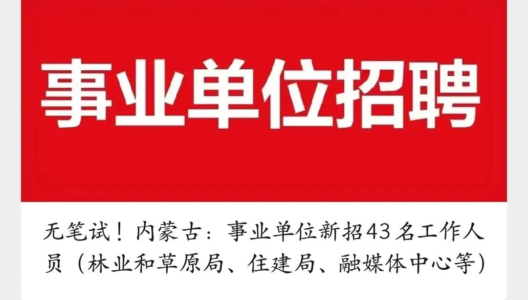 点击上方蓝字关注“内蒙古就业招聘公布平台”,每天为您发布内蒙最新公务员招聘丨事业单位招聘丨铁路招聘丨国企 | 私企等知名企业高薪招聘信息。马上关注我们吧~