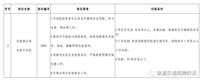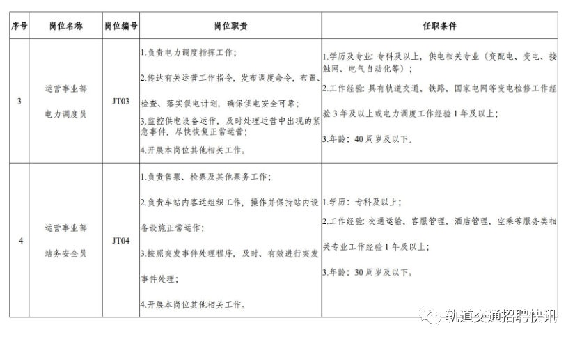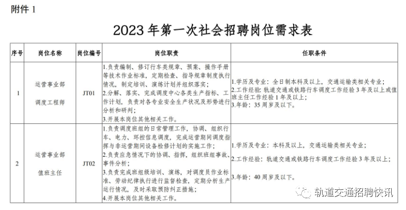 2023年第一次!轨道运营公司招聘公告