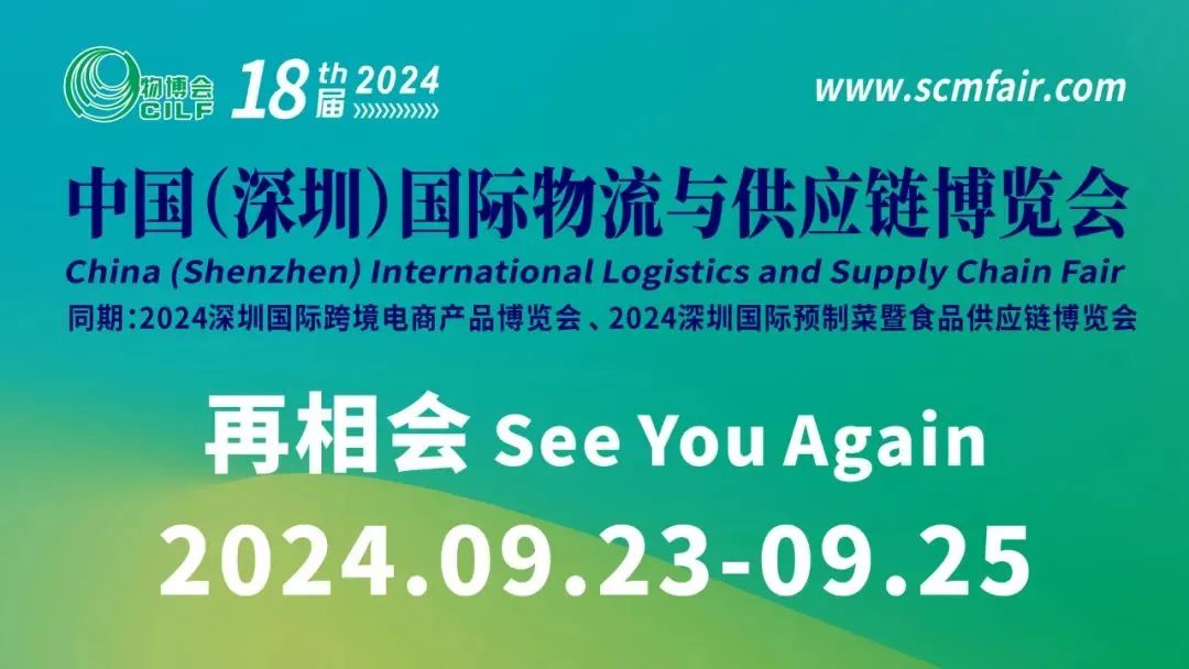 为期三天的物博会圆满收官,下一届中国(深圳)物博会将于2024年9月23-25日在深圳会展中心(福田)举行,同期再次携手第9届深圳国际跨境电商产品博览会、2024深圳国际预制菜暨食品供应链博览会并举。让我们期待下一届物博会,共同见证物流与供应链行业的高质量可持续发展!