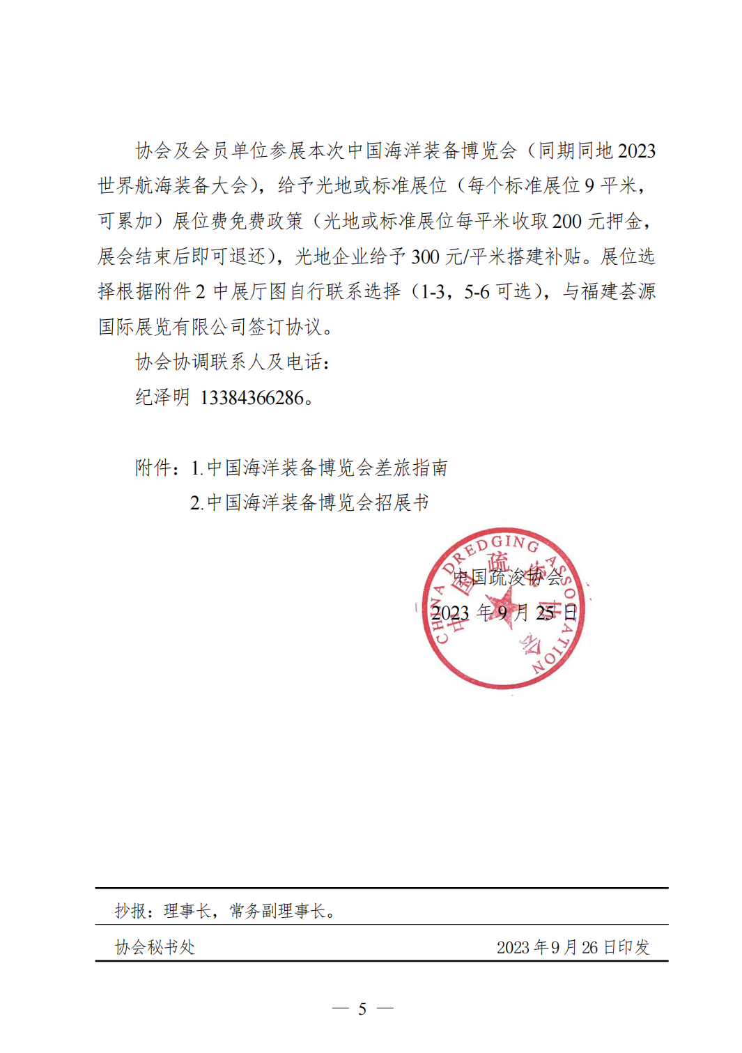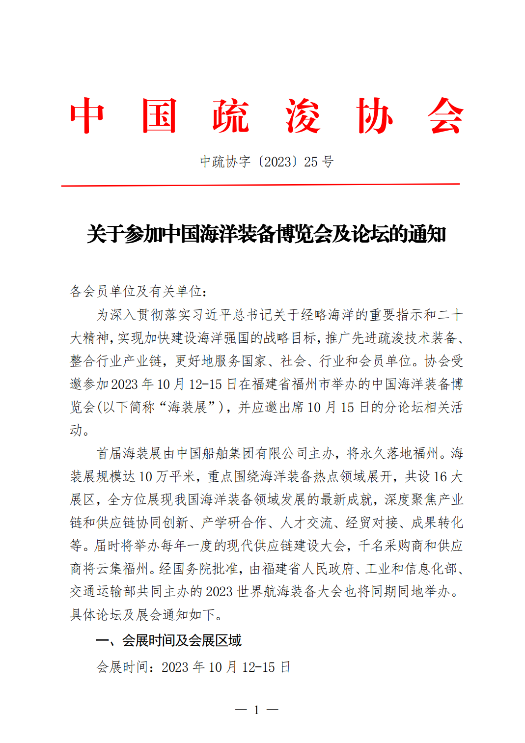 为深入贯彻落实习近平总书记关于经略海洋的重要指示和二十大精神,实现加快建设海洋强国的战略目标,推广先进疏浚技术装备、整合行业产业链,更好地服务国家、社会、行业和会员单位。协会受邀参加2023年10月12-15日在福建省福州市举办的中国海洋装备博览会(以下简称“海装展”),并应邀出席10月15日的分论坛相关活动。
