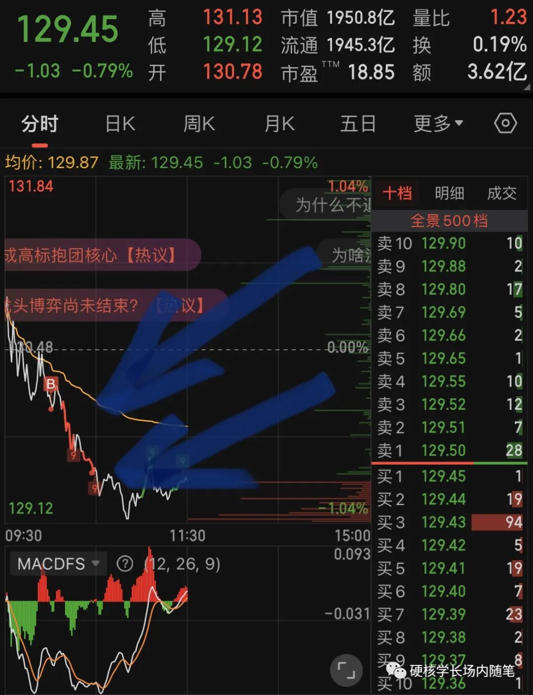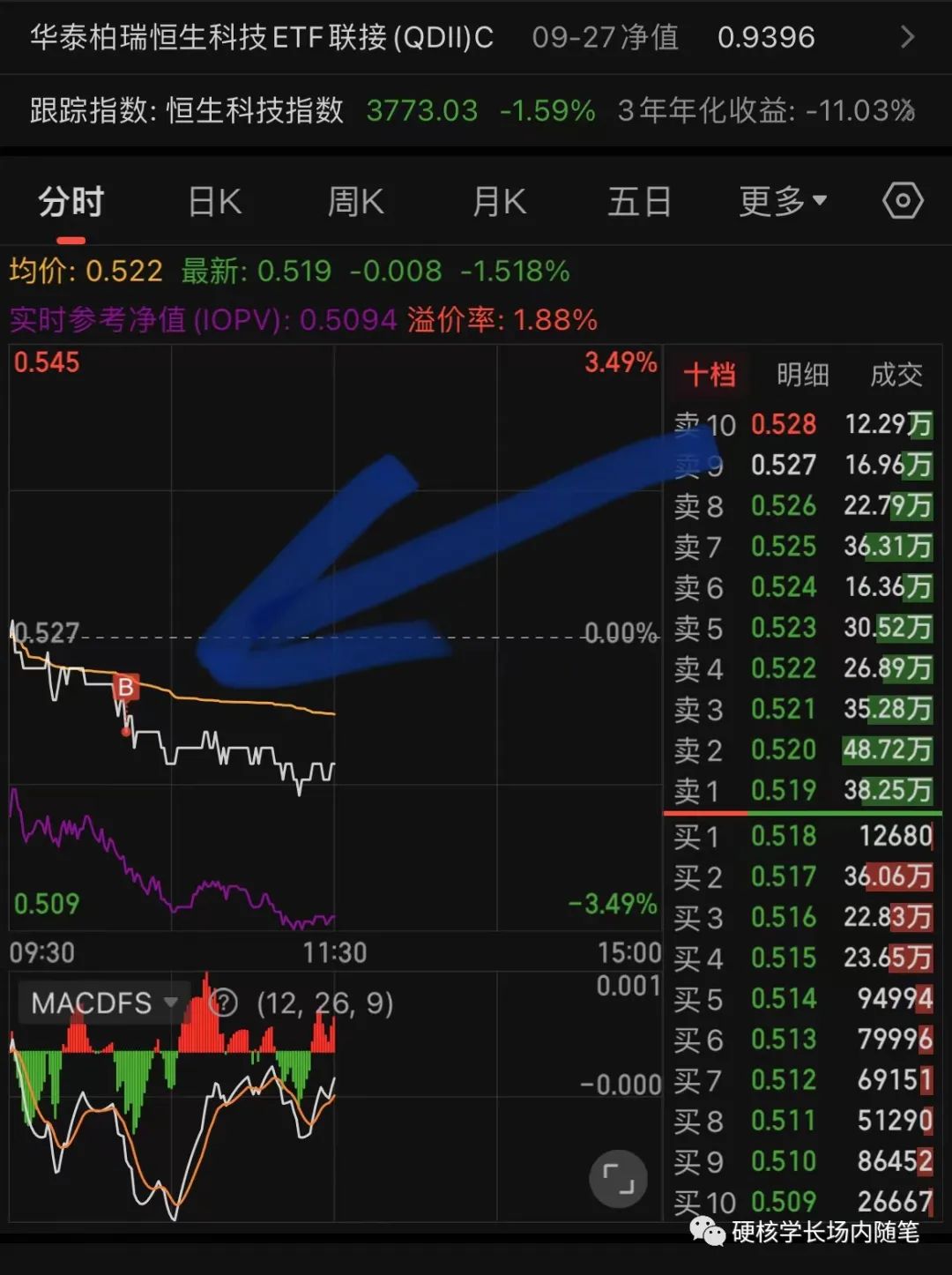 下午继续挂单白酒个股和恒生科技,我并不能确定自己可以买在最低点,因为我确实也是水平有限,我买的目的就是赚钱,能赚钱就行了,买不买在最低点,对我而言其实我不是很在意的,只要买在底部区域我就满足了。