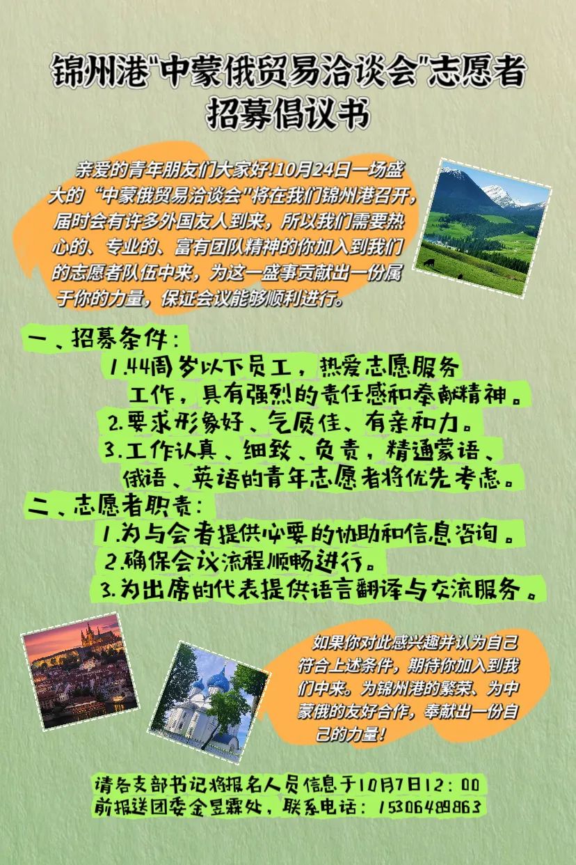 锦州港“中蒙俄贸易洽谈会”志愿者招募——期待优秀的你