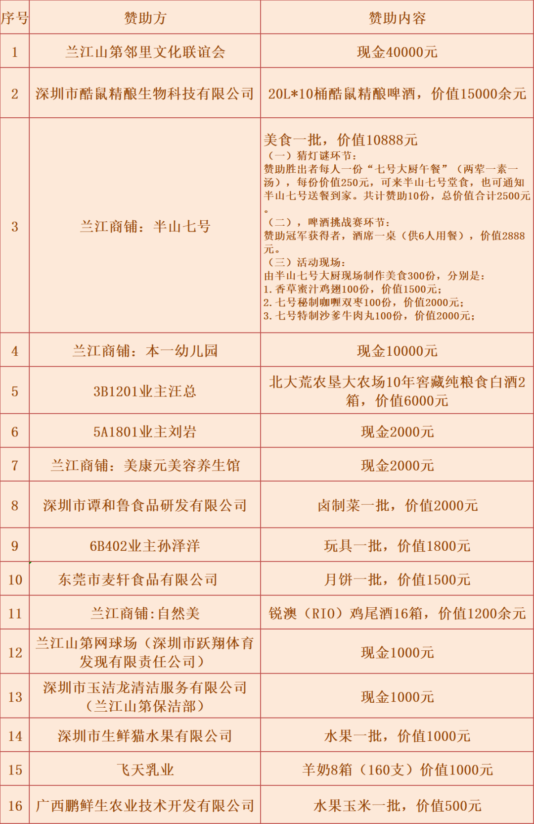 凡赞助1000元以上者,组委会可在现场提供展位一个,供赞助者展销产品或放置宣传物品(易拉宝、展架),若有新增赞助,会再次鸣谢。