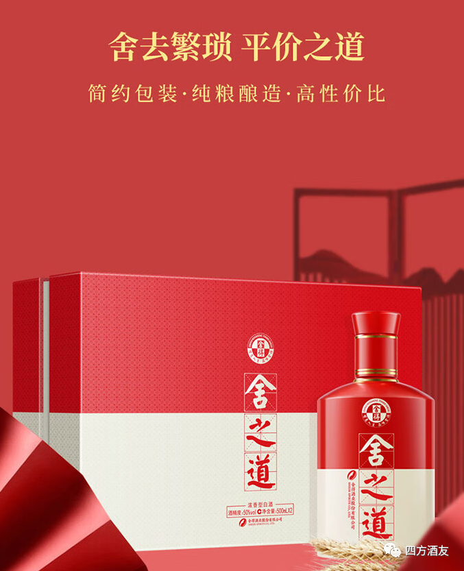 舍得舍之道酒性价比挺好的。舍得舍之道,规格52%,500ml单瓶,500ml*6整箱装,官方指导价为268元,外观为红白各一半的色调搭配,风格与舍得系列一样,仅颜色和瓶盖有不同,舍之道看起来比较喜庆,招人喜欢,但这个名字也注定了它不大适合婚宴这样的场景,所以多半这酒还是作为日常口粮。