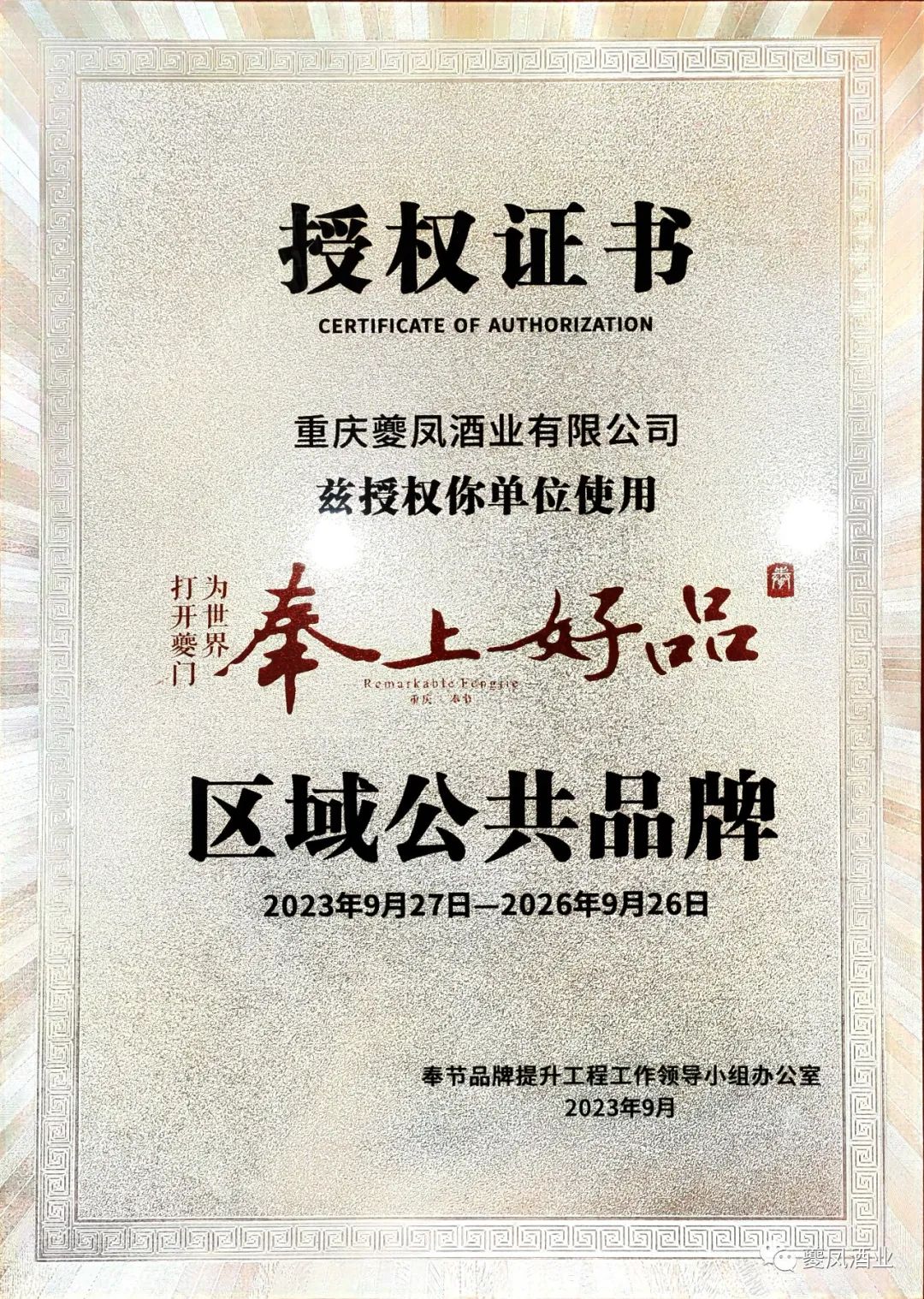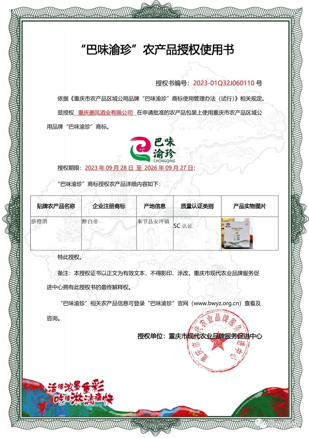 夔凤酒业获“奉上好品”“巴味渝珍”公用品牌双授权