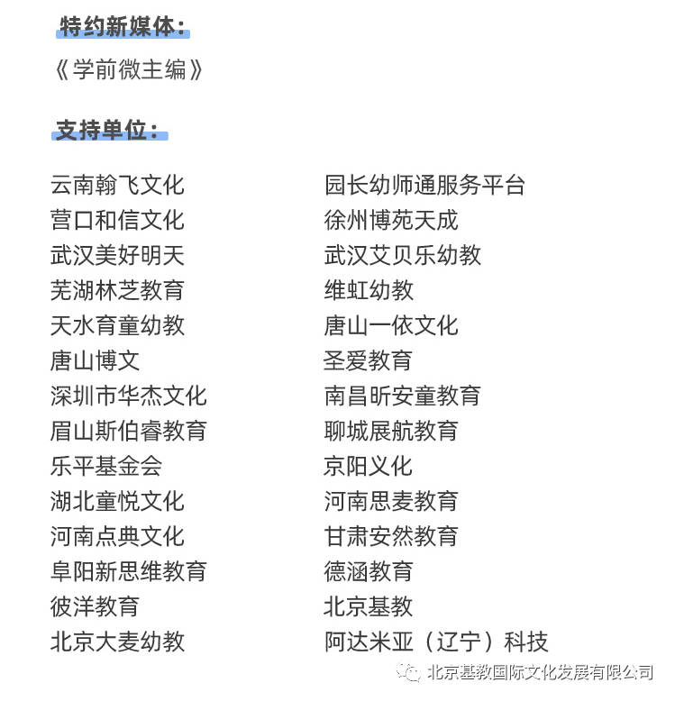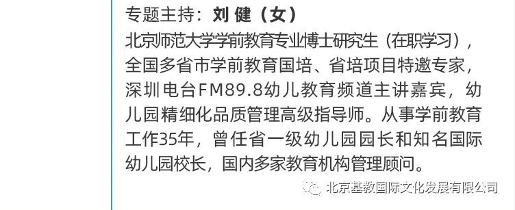 优质的教育环境,是需要大家一起努力创造的,北京基教教育将会不断推送优质的教育资源,可私人定制/名园跟岗/入园指导/承接国培项目/线上课堂等… …
