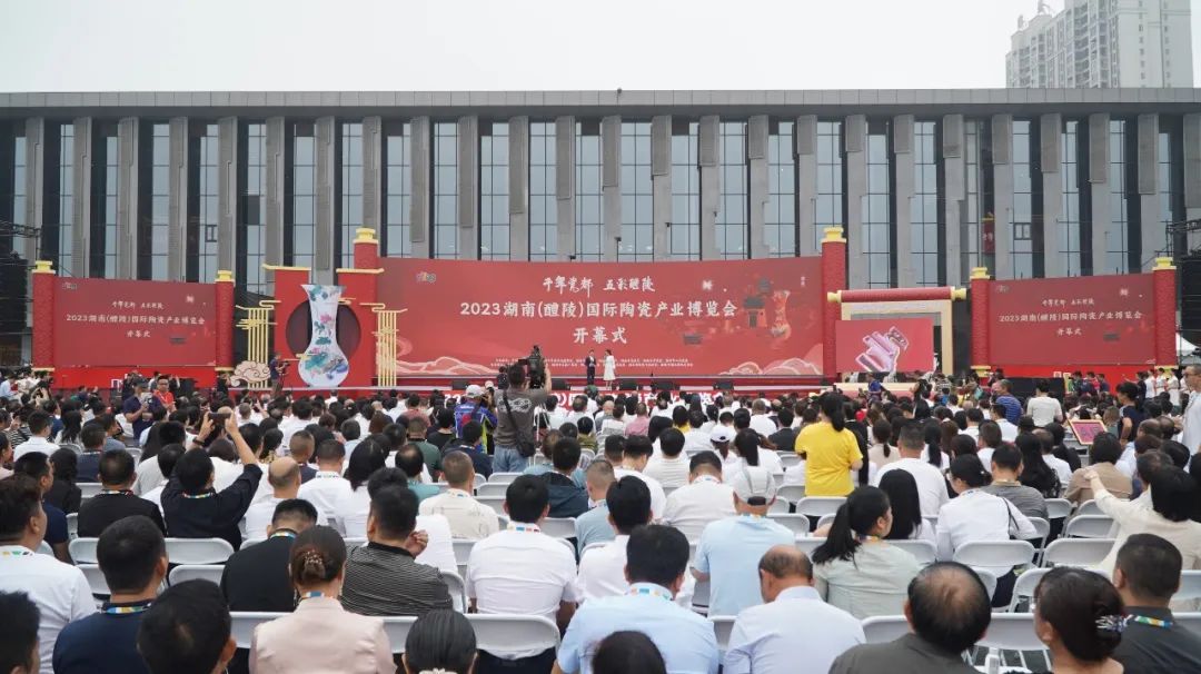 9月28日上午,2023湖南(醴陵)国际陶瓷产业博览会在中国陶瓷谷国际会展中心盛大开幕。全球宾客因瓷而聚、为“醴”而来,共赏陶瓷烟花,共谋产业发展。醴陵是世界釉下五彩瓷原产地,中国“国瓷”“红官窑”所在地和花炮祖师李畋出生地,是中国陶瓷历史文化名城、中国陶瓷之都、中国花炮之都。本次瓷博会以“千年瓷都 五彩醴陵”为主题,由中国陶瓷工业协会、中国日用杂品流通协会、湖南省商务厅、湖南省工信厅、湖南省文旅厅、湖南省贸促会、株洲市人民政府主办;由株洲市商务局、株洲市工信局、株洲市文旅广体局、株洲市贸促会、醴陵市人民政府、湖南省陶瓷行业协会、醴陵市烟花鞭炮总商会承办。