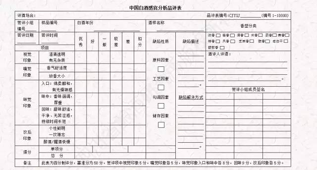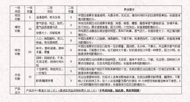 注:1、品评表满分为100分,其中基准分占50%,酒液品质占50%,(产品外包装、企业知名度、产品售价等不在评价范围之列)