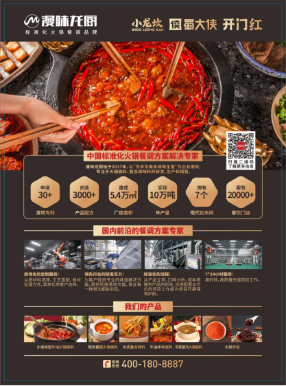 四川漫味龙厨生物科技有限公司创立于2017年,依托于小龙坎、蜀大侠等全球餐饮连锁品牌,打造全智能级供应链工厂;公司以“为中华美食调味生香”为企业使命,自设立以来始终专注于复合调味料的研发、生产和销售。现已发展成为以火锅底料、川式菜品调味料为主的复合调味料生产企业,公司充分利用自身研发优势,为国内连锁餐饮企业、大型食品企业提供产品研发和技术支持的全方位服务。