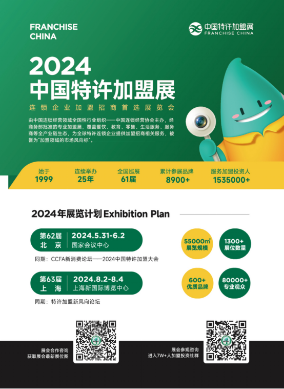 经过二十多年的历程,已发展为以中国特许加盟展展览为核心,涵盖新媒体、社群、线上加盟平台、行业报告、研习社等多个板块的综合性全渠道加盟服务平台。