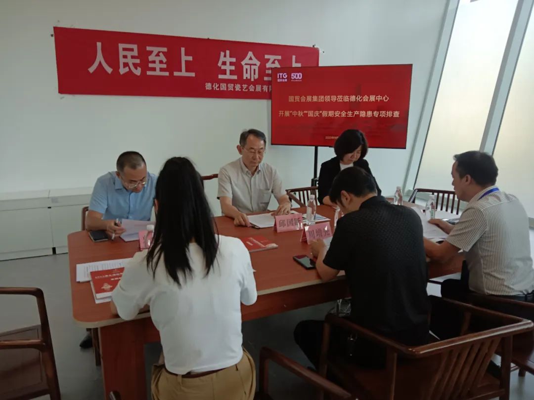 9月27日下午,国贸会展党委副书记、总经理邱国跃及德化文旅集团副总经理周增先率队前往德化会展中心开展“中秋”“国庆”假期前安全生产隐患专项排查。