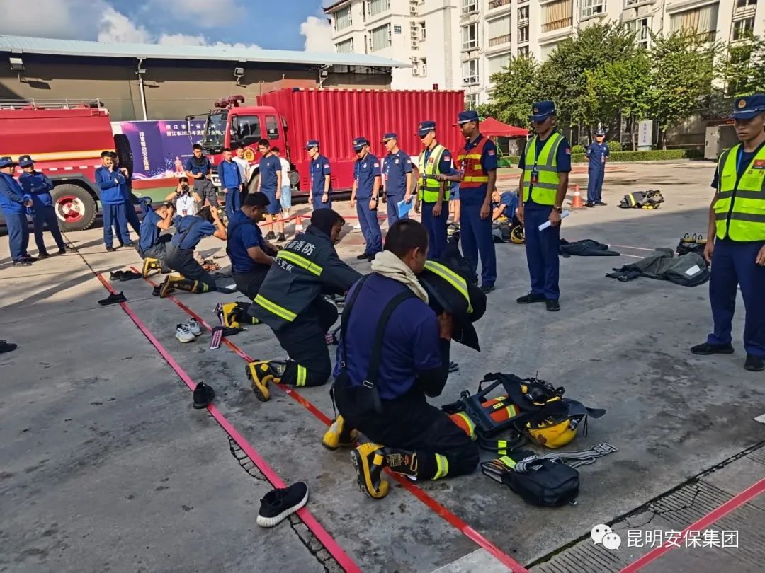 9月25日,丽江市消防救援支队组织2023年度消防行业职工职业技能竞赛,邀请昆明安保集团会展分公司驻大唐观音岩专职消防队1车5人参加此次技能竞赛。接到参赛通知后,大唐观音岩专职消防队组织参赛队员立即展开赛前训练,大唐观音岩专职消防队队长带头参加训练,亲自示范标准动作要领,遇有动作要领不规范者,进行耐心纠正,全队上下形成互帮互助的良好局面。此次参赛备训,进一步锻炼了队员的体力、耐力和爆发力,提高身体素质,大唐观音岩专职消防队不断深化训练模式,采取强有力的措施,锤炼队员顽强意志,塑造队伍优良的战斗作风,有效提升了消防员的身体素质和业务技能水平。