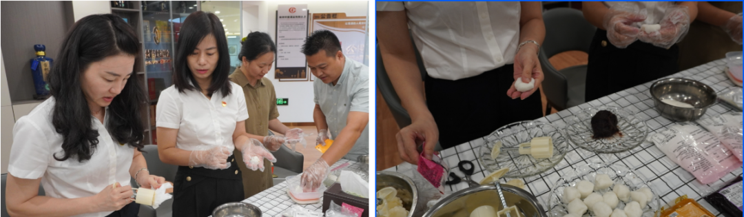 揉面、擀皮、包馅、揉搓、印花……大家兴致盎然,每一步都行云流水,白白的面皮在大家的巧手揉搓下,慢慢便成为一个个形态各异的月饼。白面为皮,莲蓉为馅,以莲寓廉,将廉洁元素巧妙融入月饼之中,通过“触摸”廉洁文化制作“廉心”月饼,将“廉”握在手中,印进心里,让“佳节”更“廉洁”。