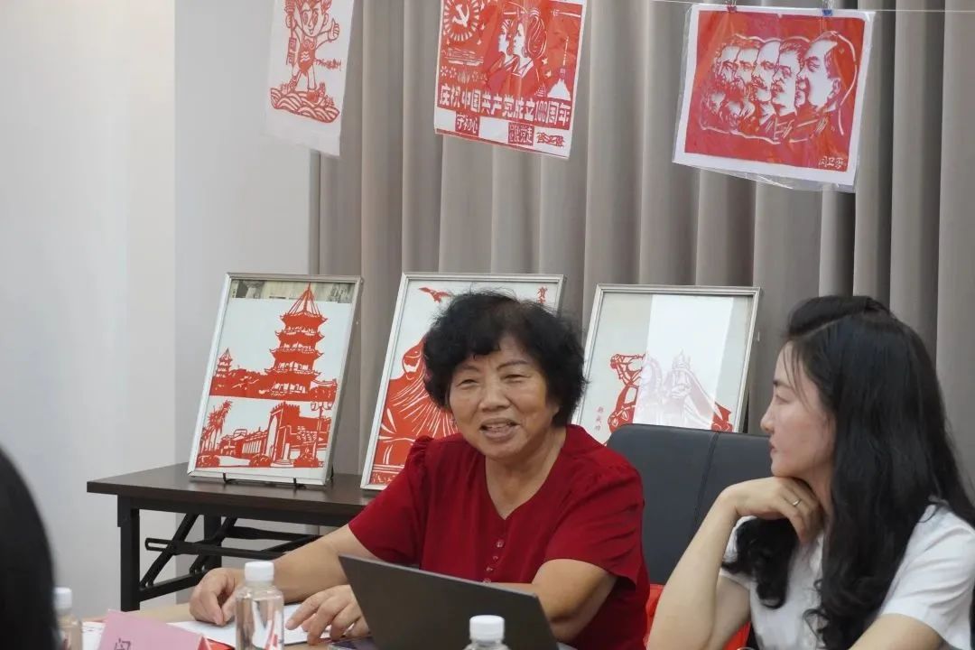 在观看非遗与清廉文化交流碰撞的宣传视频《咫尺蕴匠心 方寸剪清廉》后,特邀泉州剪纸艺术研究会会员、民间剪纸老艺人闵卫奶奶现场介绍剪纸作品、表演剪纸艺术、讲述剪纸知识,并指导大家剪出廉洁、节日主题图案、文字,以“剪”颂廉,用心“刻”廉。