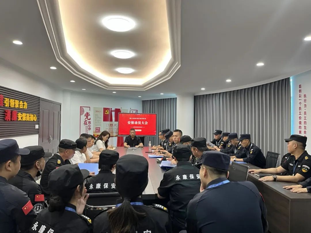 保安公司党支部书记、董事长、经理杜拥军对安保工作的开展作指导发言,强调第28届中国五金博览会开幕恰逢杭州第19届亚运会举办,节点特殊、意义重大,全体安保人员务必以临战的状态、强烈的担当、饱满的热情,务实高效、有力有序做好各项安保工作,同时指出展会安保期间高度重视食品安全、舆论宣传等关键领域,确保本次安保任务顺利完成。