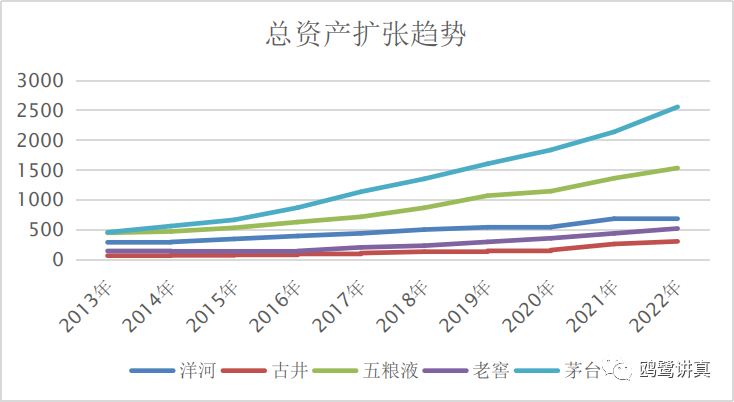 下面,我简单粗暴地用茅、五、泸、洋、古五家优质白酒企业的数据进行比较分析,分别从资产负债表、总资产、营业收入、毛利率、销售费用、扣非净利润等六个维度,验证优质白酒企业的商业模式。