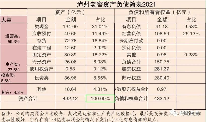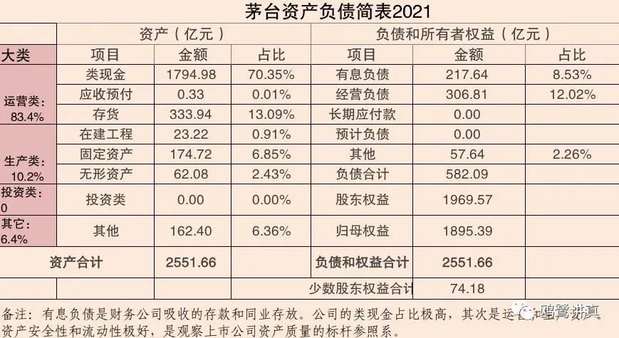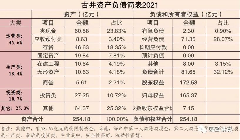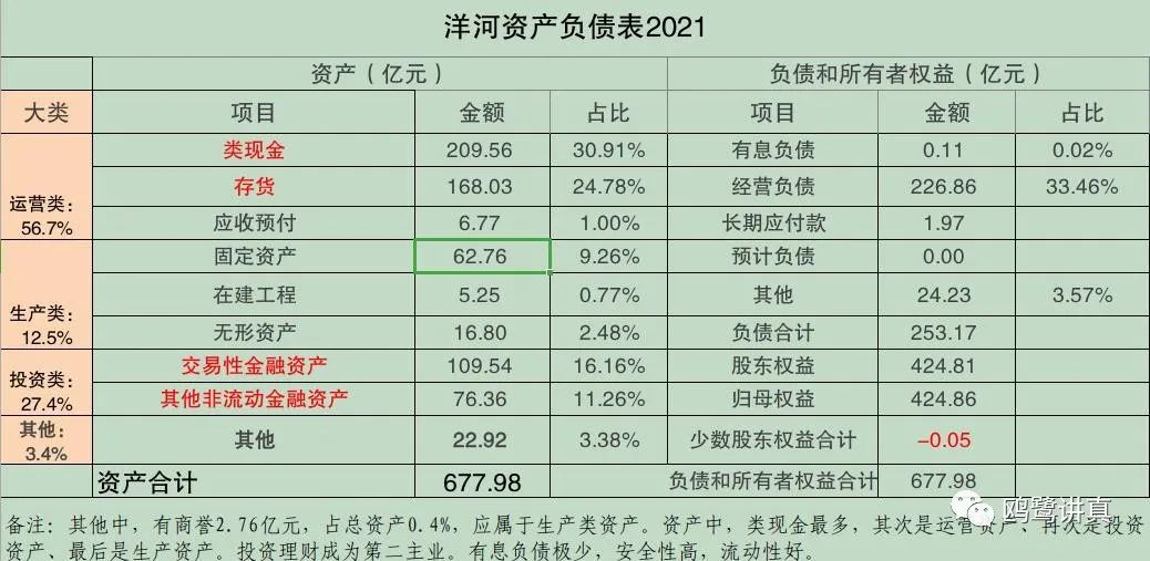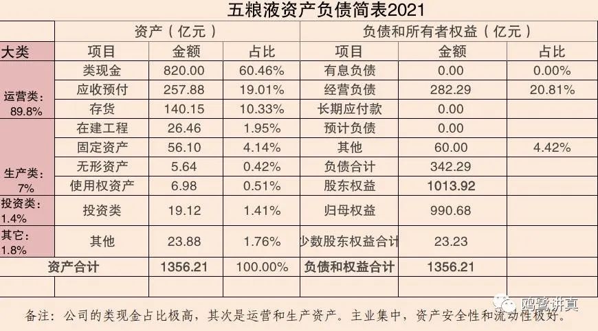 五家企业的资产负债表都没有让人眩晕的会计科目,干净、通透。酒企的资产都可以大致分为运营类资产、生产类资产和投资类资产,其中用于生产的资产占比都很小,运营类资产次之,最多的还是类现金及投资理财。