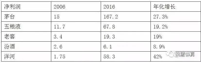 在老唐对洋河2023年中报的简评中,列出了2006-2016净利润变化情况