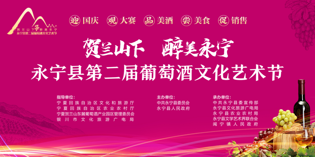 此次活动以“迎国庆·观大赛·品美酒·尝美食·促消费”为核心,由宁夏贺兰山东麓葡萄酒消费节暨永宁县第二届葡萄酒文化艺术节开幕式、第七届中秋诗会、第二届摇滚音乐节、美食狂欢节等九个主题板块组成。