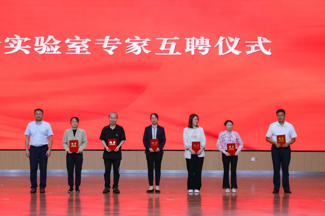 仪式上,青岛科技大学教授刘世杰和广饶县科学技术局局长刘培海为高分子材料与智能制造联合实验室揭牌。
