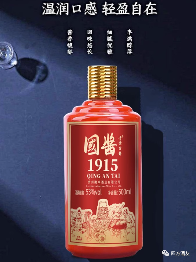 该酒属于酱香型白酒,酒精度53°,净含量500ml原料,水、高粱、小麦。国酱1915酒的质地比较的好,酒香味浓郁,丰满醇厚、幽雅细腻。