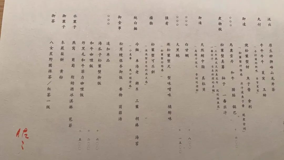 佐佐怀石料理本季套餐,10月套餐将做调整,请留意