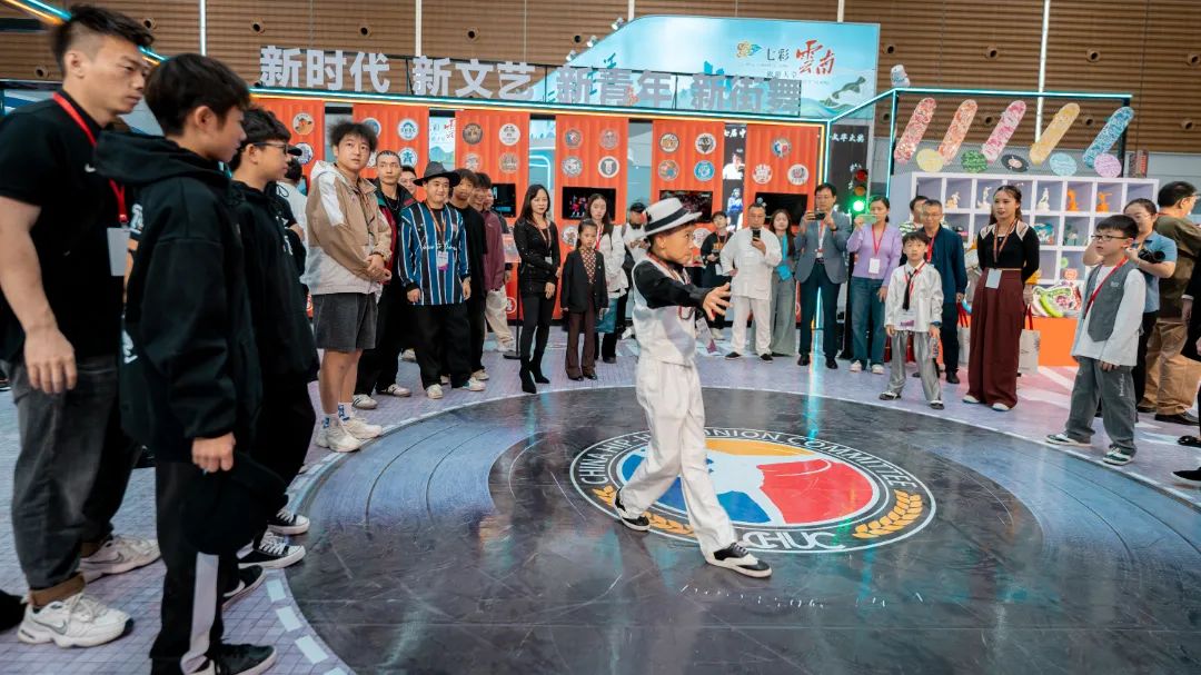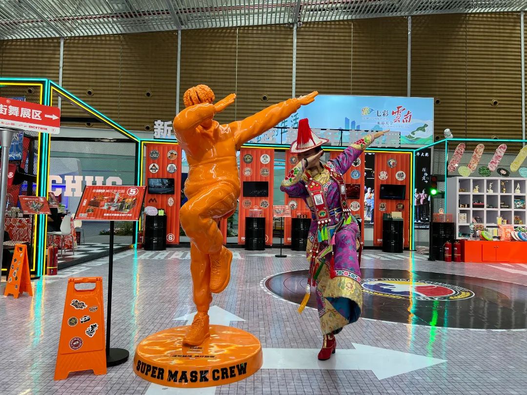街舞已成为当下年轻消费群体最热衷的时尚潮流文化之一,各类街舞赛事活动、街舞电影、综艺节目获得了社会大众广泛关注。预估当前中国街舞年产值已破千亿。本次“中国街舞”展区统筹全国街舞文化产业资源,提炼十年来中国街舞产业典型艺术作品、案例、项目,以街舞青年的文创之力融合中国街舞文化产业精华,集中展示。用新时代街舞青年的青春朝气,开拓新格局,创作新硕果。