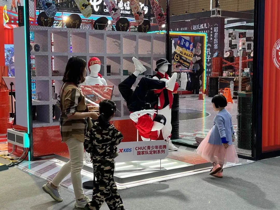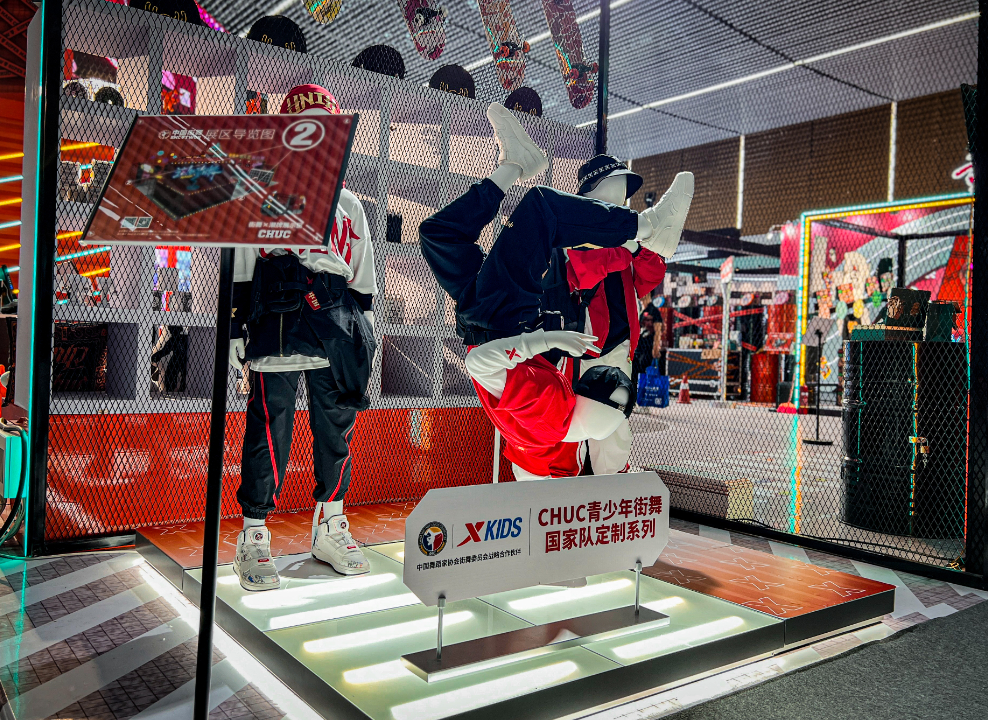 在当前街舞周边产品领域中,街舞潮流服饰是其中重要的一环。特步儿童与CHUC全国街舞联盟合作出品的街舞服饰、CHUC青少年街舞国家队的队服,以及CHUC全国街舞联盟各地发布的街舞潮流服饰,全部亮相于此,为展区增添了更多时尚气息。