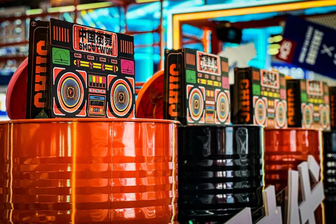 本次“中国街舞”展区的所有区域,都经过了认真设计,每一处细节、每一个角落都做了精心布置。大到整个框架,小到水瓶贴画,全场充满了中国街舞元素,无不是在向大众证明着中国街舞产业蒸蒸日上的发展趋势。
