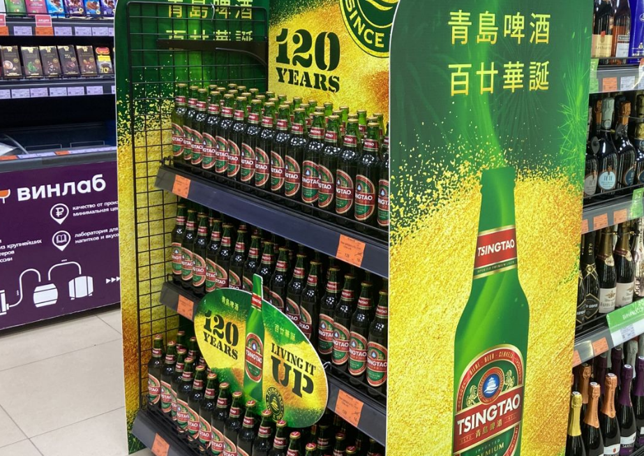“经典产品性价比高、口味也好,‘有麦香,不上头’,120年就是这个味,今天已经补了两次货了。”在一家连锁超市酒水区,两位销售人员不停忙着补货。