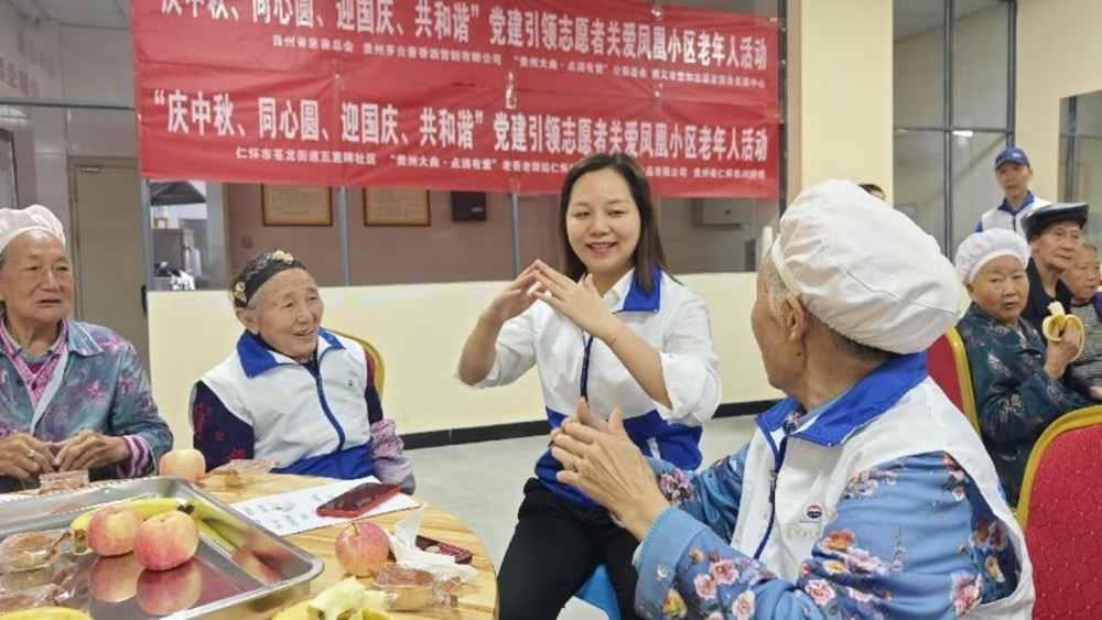志愿者与老人们一起做游戏、演节目,现场气氛其乐融融,在亲切交谈的过程中,志愿者们祝愿老人身体健康、中秋快乐,并叮嘱老人保持良好的心态。社区老党员陈宗国老人现场激动发言:中秋节不仅有街道和社区的关怀,还有茅台志愿者的爱心慰问,党和国家对我们太好了。
