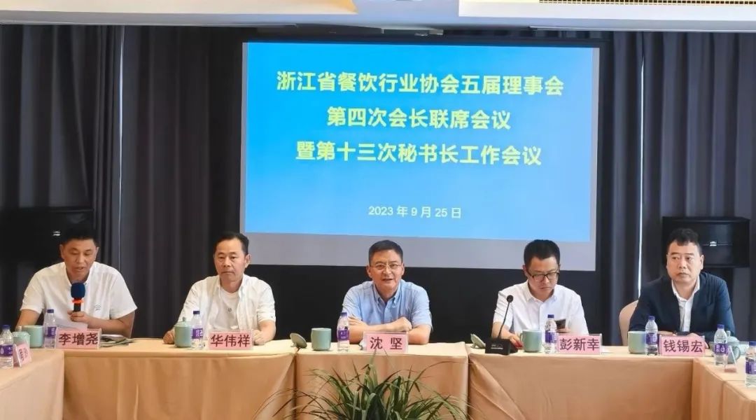 会上,沈坚会长通报了省协会2023年围绕“强党建、创品牌、促消费、助亚运、重交流、谋发展”等方面所做的主要工作,并对下一阶段工作进行了专题部署:一是进一步强化党建统领。省协会正在积极创建清廉社会组织示范点和争创全省品牌社会组织;二是持续加强品牌建设。推进国家钻级酒家酒店、浙江“三名”工程等餐饮品牌创建工作,加强行业人才培养和职业技能等级认定;三是认真做好行业活动。策划组织好“浙里来消费·金秋购物节”系列活动、2023浙江年货节、浙菜美食节暨第十二届浙江厨师节、中国地方菜发展大会、浙江省第七届地方特色菜(象山海鲜)邀请赛、笫九届中华茶奥会全国名茶点名茶肴大赛和全省“百县千碗”水产类与蔬菜类菜品挑战赛等餐饮业促消费活动,围绕省协会成立35周年庆典,拟组织省内外行业学者专家、餐饮大师启动编撰《浙江饮食文化史》;四是推进《绿色低碳餐饮企业评价规范》地方标准制定,做好第四批全省“百县千碗”美食体验场所评价认定和省协会部分专委会的换届工作。沈坚会长希望各市协会在当前亚运会举办期间,要着重指导餐饮企业、会员单位做好食品安全、消防安全工作,全力助力亚运会成功举办。同时,希望与各市协会进一步加强沟通交流协作,不断创新服务载体,激发行业活力,促进餐饮消费,在全省打造“重要窗口”建设和奋力推进“两个先行”进程中继续发挥好商协会的积极作用。